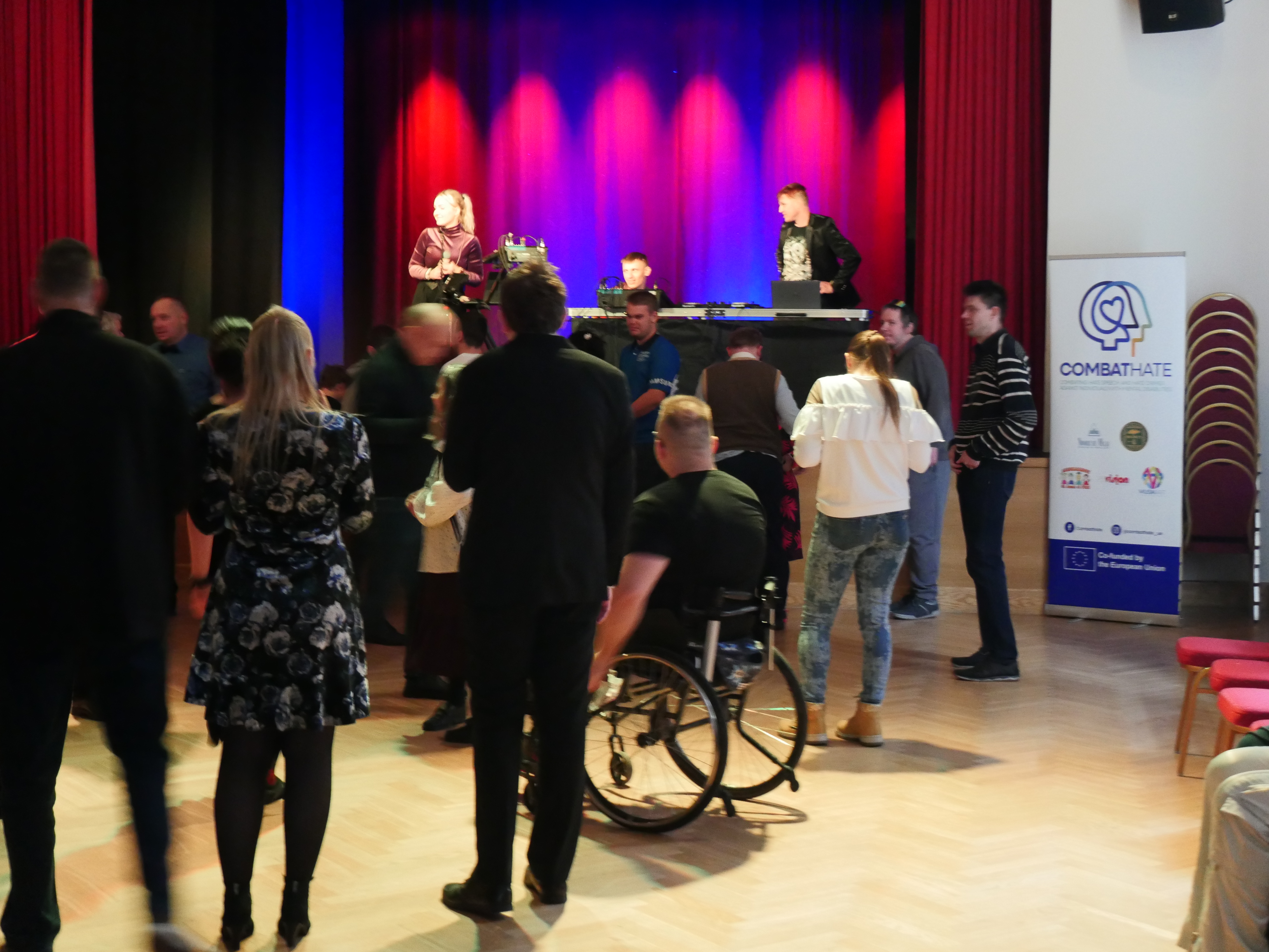 A key moment during their visit was the live dissemination event of the COMBATHATE project, which was taking place at the same time in the main hall of Nooruse Maja. This public awareness event was organised and led by the second Estonian project partner, Amanita, and gathered an audience of approximately 70 participants, including individuals with mental disabilities, their family members, educators, and NGO workers. The timing allowed the Kadrina delegation to witness first-hand the project's community outreach and public engagement component.