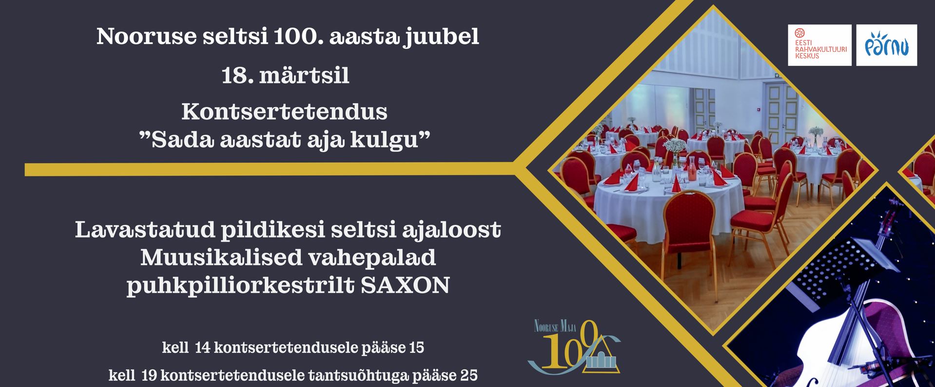 Nüüd on nii, et üks põnev lugu on varsti ilmavalgust nägemas. Nooruse maja lugu! Kust Rääma vaesed töölised sada aastat tagasi raha said, et selts asutada ja korralik seltsimaja püsti lüüa? Miks nõukaajal rahvavalimistel käimine terve päeva võis võtta? Millistel diskodel peolised tantsimise asemel ekraane vahtisid? Miks maod Nooruse Majja sattusid? Neile küsimustele annab vastused 18. märtsil toimuv kontsertetendus "Sada aastat aja kulgu", kus rahvateatri näitlejad Nooruse Maja pika ajaloo parimad palad lavale toovad. Vastavate ajastute muusikaga loob meeleolu "Saxon". Tule kindlasti vaatama, sest etendust mängitakse ainult kaks korda!